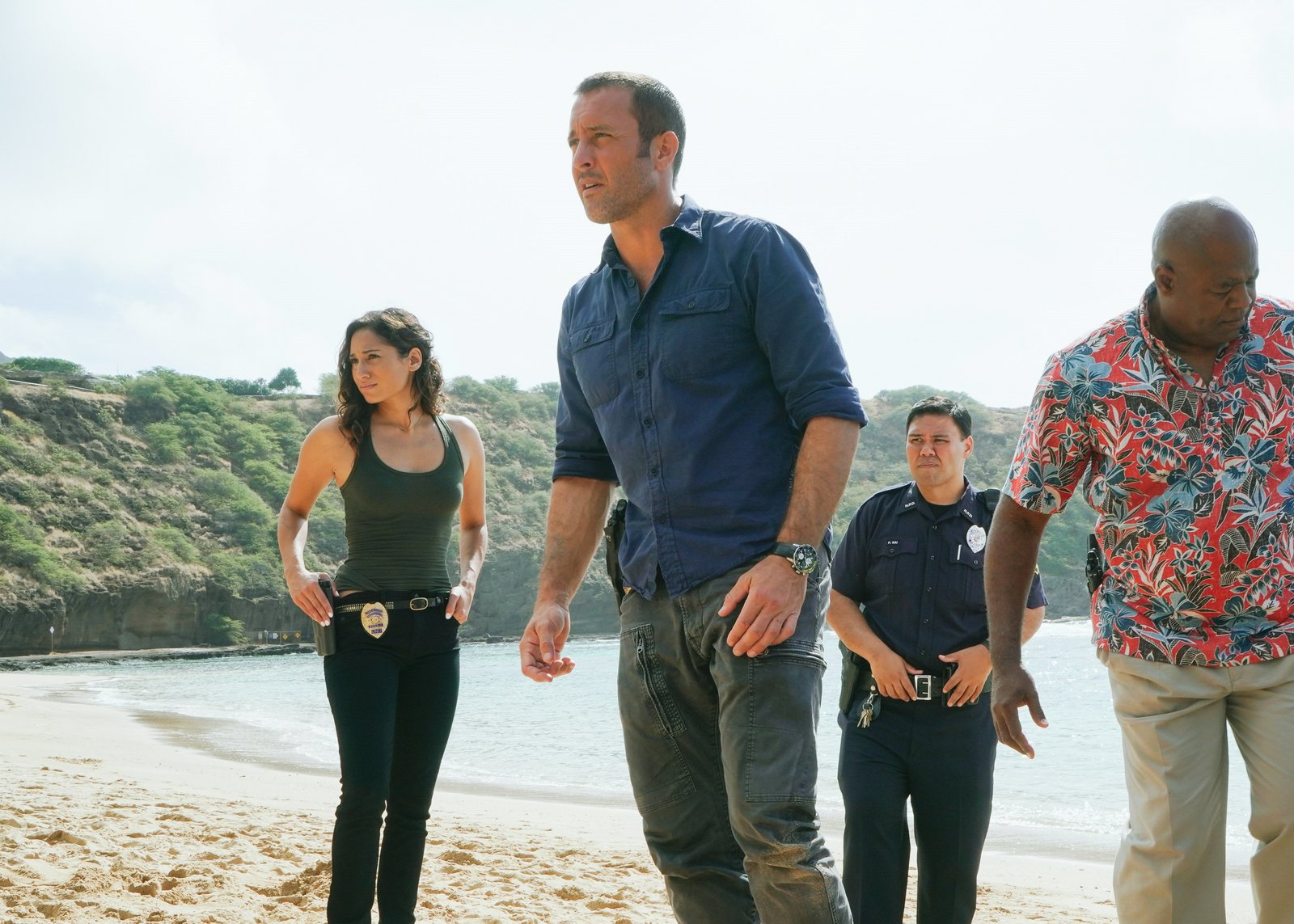 (v.l.n.r.) Tani Rey (Meaghan Rath); Steve McGarrett (Alex O'Loughlin); Pua Kai (Shawn Thomsen); Lou Grover (Chi McBride)