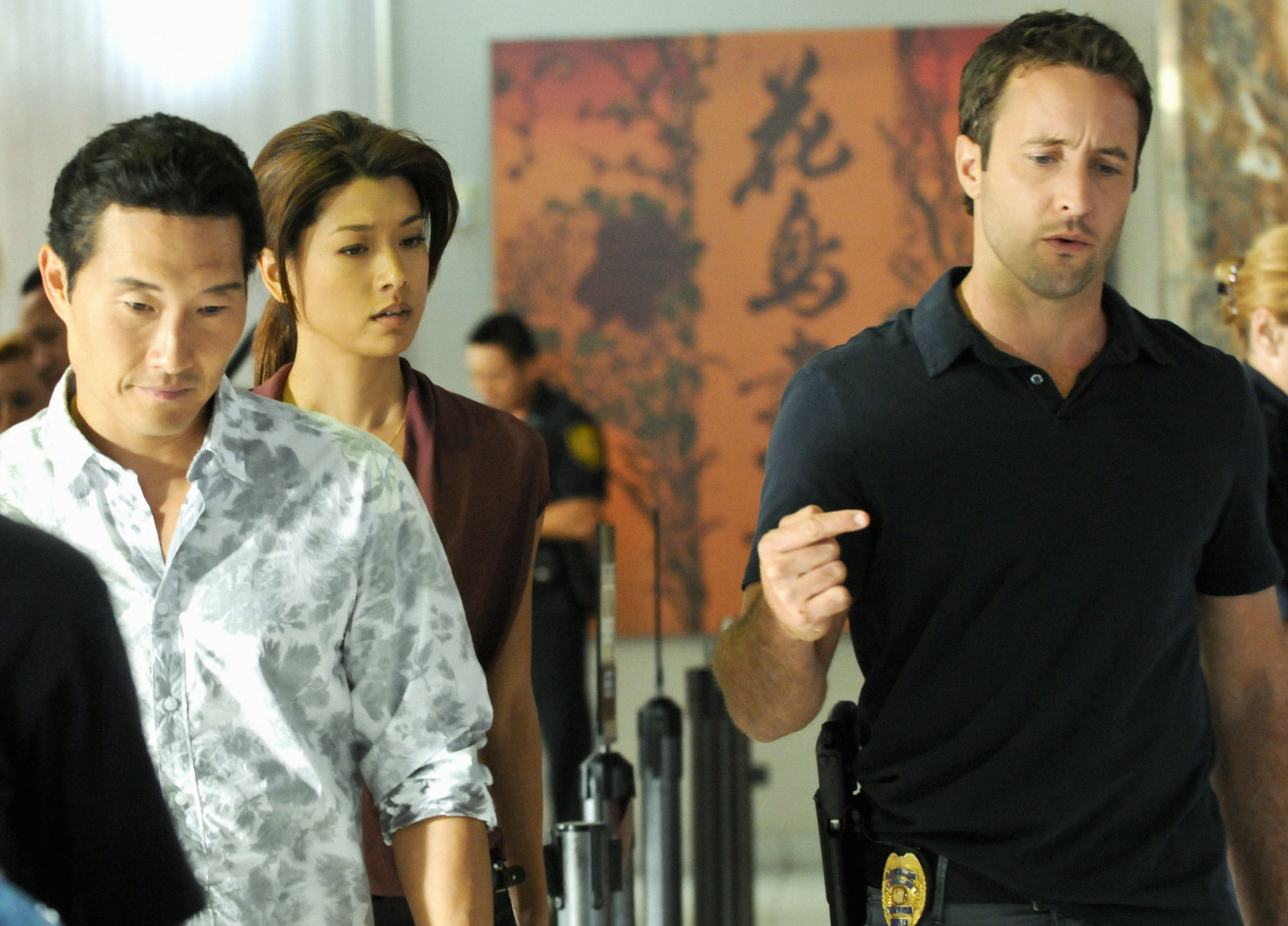 Allzeit bereitHa\'awe Make Loa" --The team (Daniel Dae Kim, left, Grace Park, center and Alex OâLoughlin, right) must help Max and his crush when a botched bank robbery leads the team to determine that the criminals had very unexpected motives, on HAWAII FIVE-0, Monday Dec 3 (10:00-11:00 PM, ET/PT) on the CBS Television Network. Photo: Norman Shapiro/CBS ©2012 CBS Broadcasting, Inc. All Rights Reserved.Bild: © Norman Shapiro / ©2012 CBS Broadcasting, Inc. All Rights Reserved.