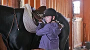 Wider besseren WissensAmy (Amber Marshal) versucht, dem Packpferd Archie das Scheuen abzugewoehnen.Bild: © Bibel TV