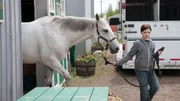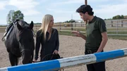 Das GrauenTy (Graham Wardle) draengt Amy (Amber Marshall), wieder mit dem Hengst Zeus zu arbeiten, um ihr Trauma zu ueberwinden.Bild: © Bibel TV