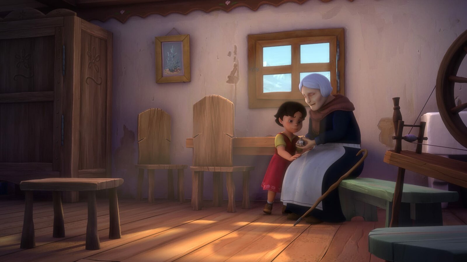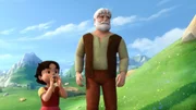 Heidi rettet SchneeaugeGroüvater und Heidi verabschieden sich schweren Herzens voneinander.ÂBild: © ZDF/Studio 100 Animation/Heidi Productions Pty. Limited