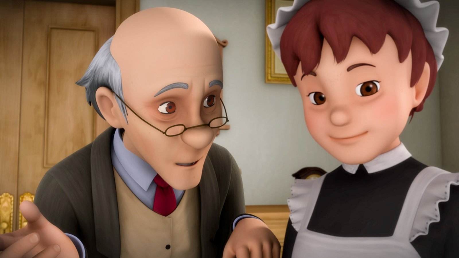 Ein Geist geht umFräulein Rottenmeier geht in den Flur, weil sie ein seltsames Geräusch hört.Bild: © ZDF und Studio 100 Animation/Heidi Productions Pty