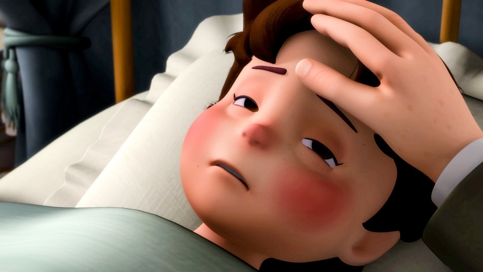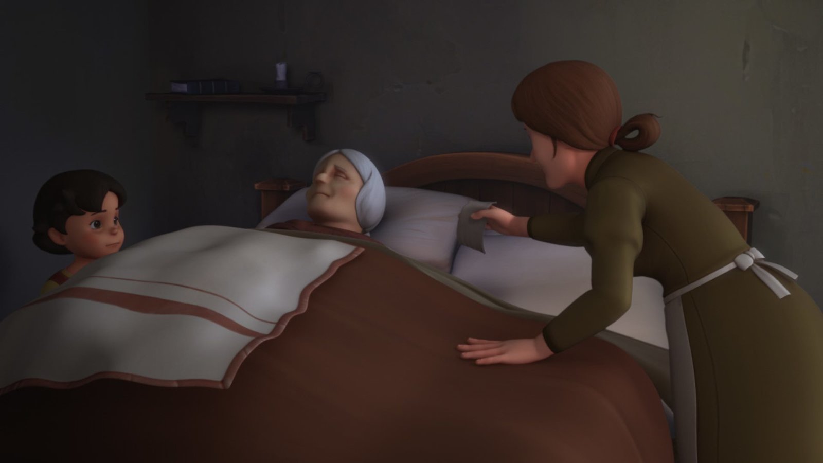 Großmutter ist krankGroßmutter liegt in ihrem Bett.Bild: © ZDF und Studio 100 Animation/Heidi Productions Pty