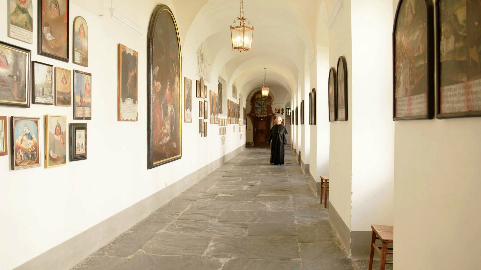 Ehemaliger Prior Pater Norbert Harm im Kreuzgang der Wallfahrtskirche Maria Luggau.Bild: © ORF/Clever Contents