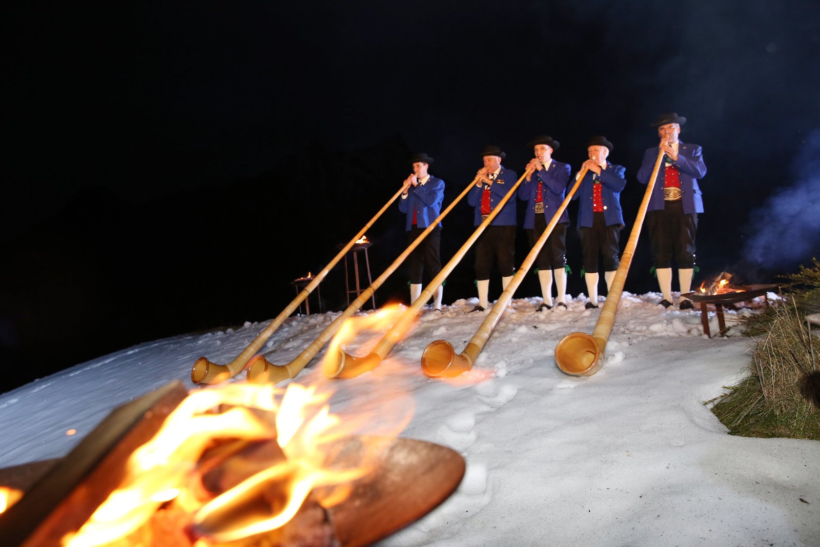 Brandner Alphornbläser in der Walsertracht.Bild: © ORF / ORF-Vorarlberg / Nikolai Dörler