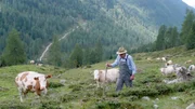 Der ehemalige Bergbauer Franz Gruber mit seinen Kühen auf der Komitzenalm.Bild: © ORF/Unafilm