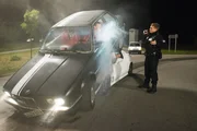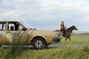 Bamberger Reiter - Ein FrankenkrimiStefan Breu (Tobias Oertel) auf dem Weg zur Tankstelle. Kommissar Peter Haller (Thomas Schmauser) versucht mit ihm zu redenBild: © S: Heimatkanal (DE) / BR/Barbara Bauriedl
