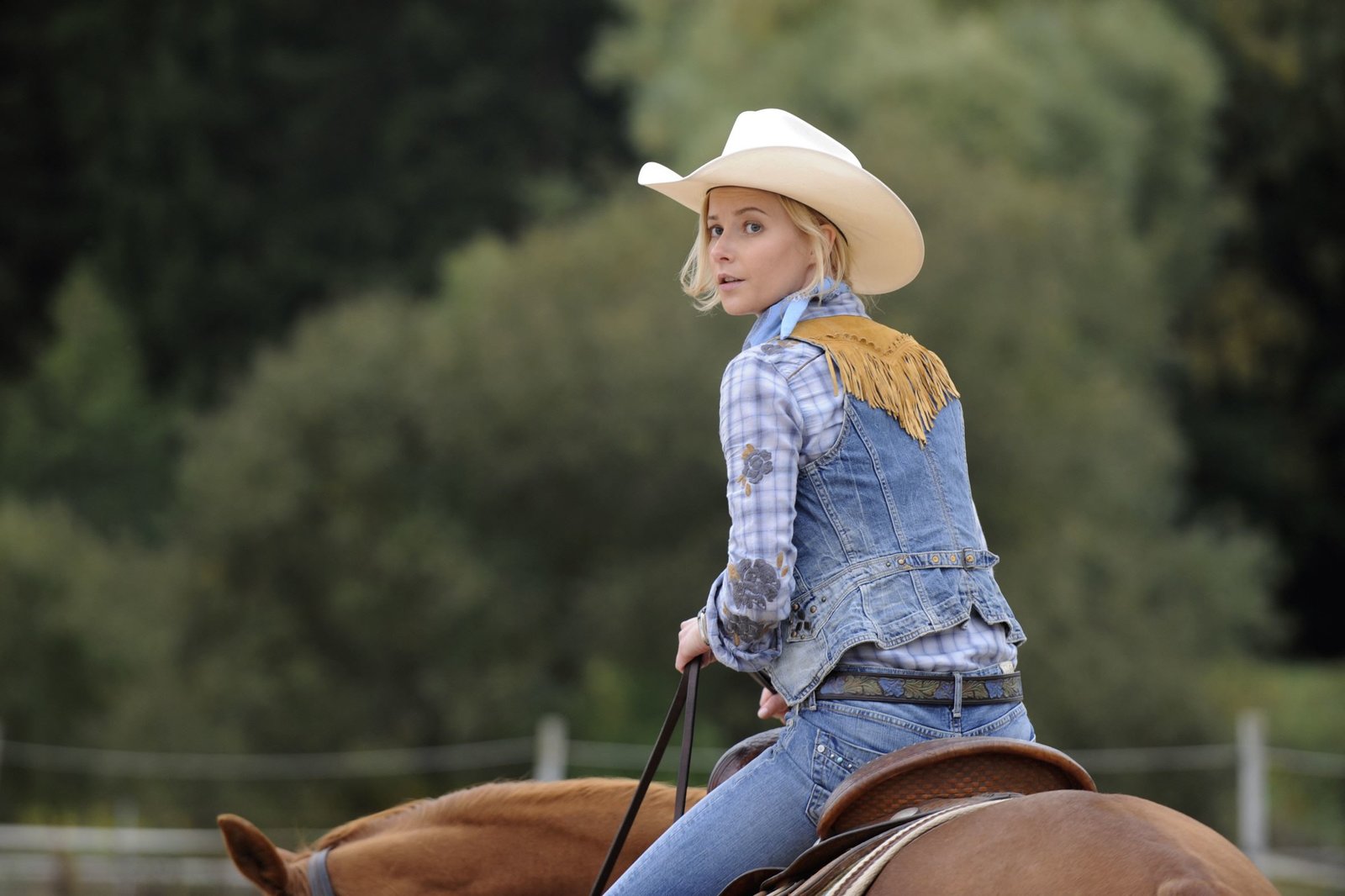 Bamberger Reiter - Ein FrankenkrimiBirgit Sacher (Teresa Weißbach) erhält Unterricht im Westernreiten.Bild: © BR/Barbara Bauriedl