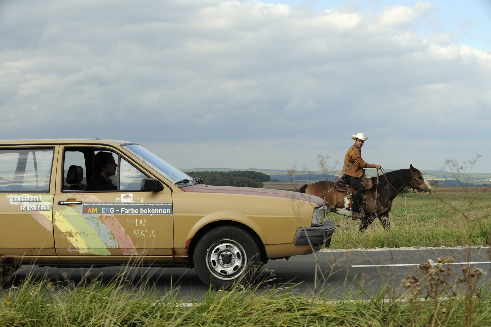 Bamberger Reiter - Ein FrankenkrimiHauptkommissar Peter Haller (Thomas Schmauser) fährt Stefan Breu (Tobias Oertel) hinterher und versucht mit ihm zu reden.Bild: © BR/Barbara Bauriedl / Barbara Bauriedl