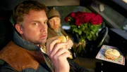Winterkartoffelknödel. Ein EberhoferkrimiRudi Birkenberger (Simon Schwarz, hinten) wartet auf die vermeintlich große Liebe. Franz Eberhofer (Sebastian Bezzel) begnügt sich derweil mit seinen heißgeliebten Leberkässemmeln.Bild: © ARD Degeto/BR/Constantin Film/Bernd Schuller