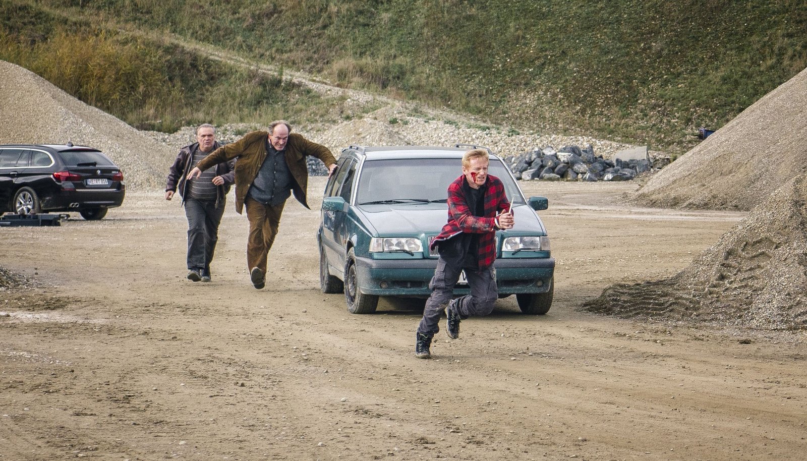 Schutzpatron. Ein KluftingerkrimiStrehl (Mike Möller, rechts) flieht vor Hefele (Jockel Tschiersch, links) und Kluftinger (Herbert Knaup, Mitte).Bild: © ARD Degeto/BR/Hendrik Heiden