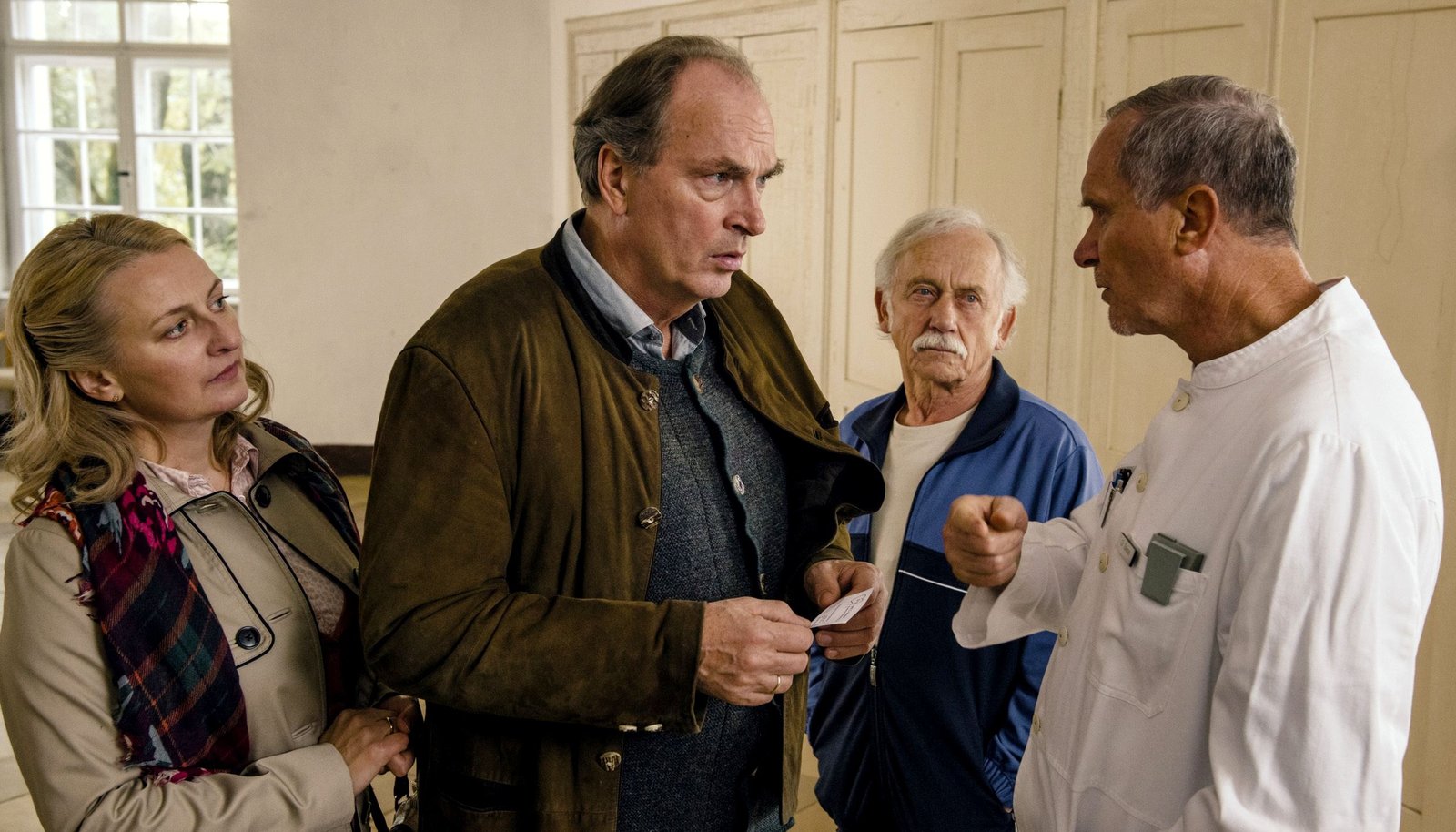 Herzblut. Ein KluftingerkrimiKluftinger (Herbert Knaup, 2. von links) und Erika (Margarete Gilgenreiner) besuchen Papa Kluftinger (Tilo Prückner, Mitte) in der Klinik von Dr. Steiner (Bernd Dechamps, rechts).Bild: © BR/ARD Degeto/Hendrik Heiden