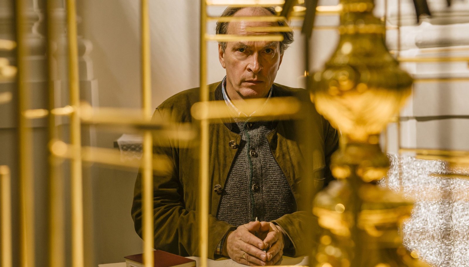 Schutzpatron. Ein KluftingerkrimiKluftinger (Herbert Knaup) erreicht schweißgebadet die Kapelle und geht zum Beichtstuhl.Bild: © ARD Degeto/BR/Hendrik Heiden