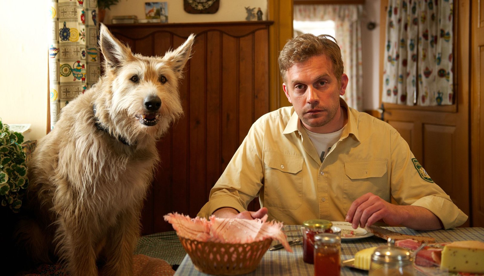 Winterkartoffelknödel. Ein EberhoferkrimiNeu an Franz Eberhofers (Sebastian Bezzel) Seite: Hund Ludwig (Silas).Bild: © ARD Degeto/Constantin Film/Bernd Schuller
