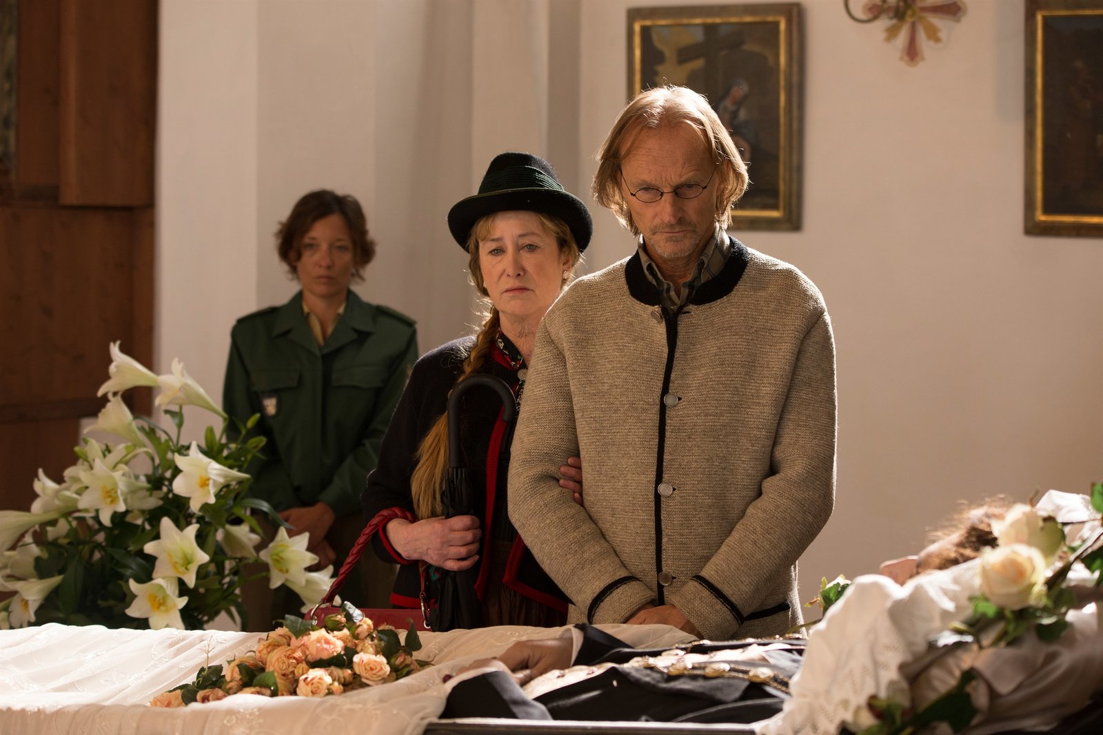 Leberkäsjunkie. Ein EberhoferkrimiGerhard Wittmann (Leopold Eberhofer), Sebastian Bezzel (Franz Eberhofer), Enzi Fuchs (Oma Eberhofer), Lisa Maria Potthoff (Susi).Bild: © ORF 1