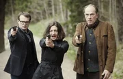 Seegrund. Ein KluftingerkrimiKommissar Kluftinger (Herbert Knaup, rechts) verhaftet mit seiner Kollegin Marx (Catrin Striebeck) und seinem Kollegen Richard Maier (Johannes Allmayer) die Verschwörer vom Altasee.Bild: © MDR/Degeto/BR/Hagen Keller