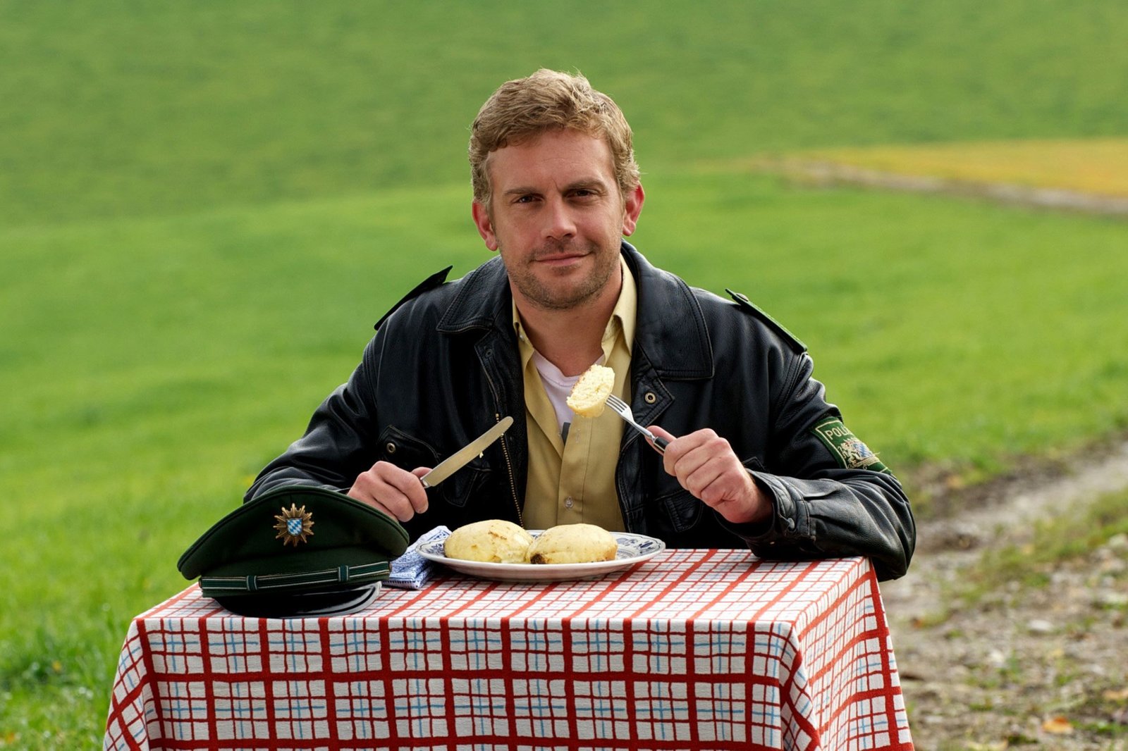 Dampfnudelblues. Ein EberhoferkrimiStärkung muss sein: Polizeihauptmeister Franz Eberhofer (Sebastian Bezzel) beim Mittagessen.Bild: © ARD Degeto/ARD Degeto/BR/Bernd Schuller