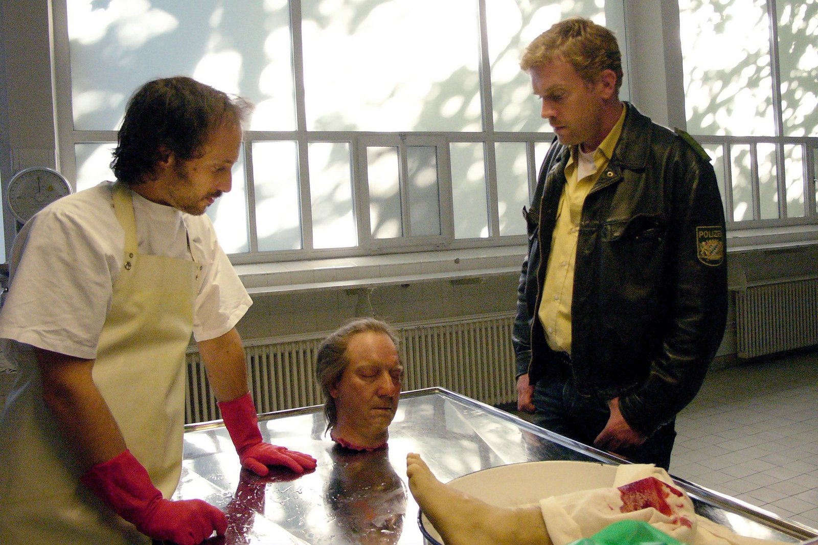 Dampfnudelblues. Ein EberhoferkrimiARD DAMPFNUDELBLUES. EIN EBERHOFERKRIMI, Deutschland 2013, Regie Ed Herzog, am Donnerstag (05.12.13) um 20:15 Uhr und um 00:20 Uhr im Ersten. Franz (Sebastian Bezzel) und der Pathologe Günther (Michael Ostrowski) nehmen die Überreste des toten Schuldirektors Höpfl (Robert Palfrader) in Augenschein.Bild: © "ARD Degeto/BR/Bernd Schuller" (S 2)