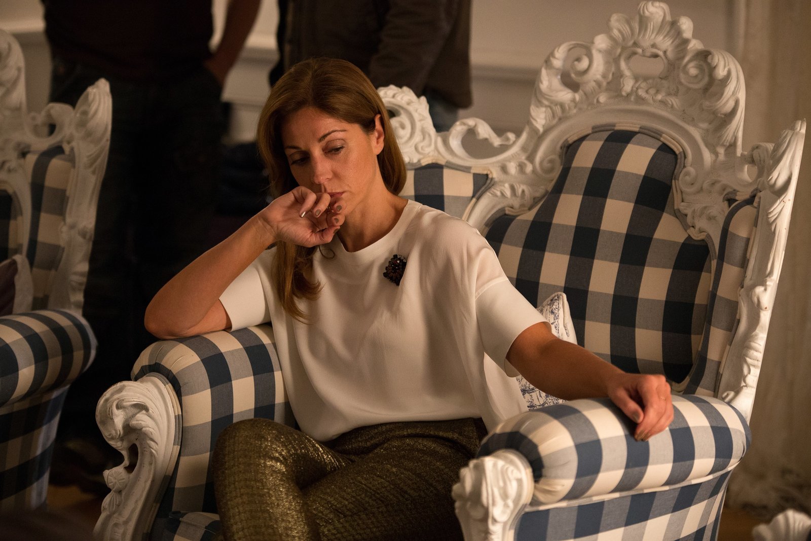 Die reichen Leichen. Ein StarnbergkrimiRita Weilinger (Ulrike C. Tscharre) wartet darauf, dass sich die Entführer melden.Bild: © S: Heimatkanal (DE) / BR/Julia von Vietinghoff