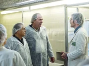Milchgeld - Ein KluftingerkrimiKommissar Kluftinger (Herbert Knaup, 2. von rechts) besucht mit dem Kollegen Roland Hefele (Jockel Tschiersch, 2. von links) die Molkerei und befragt Robert Bartsch (Urs Fabian Winiger, rechts).Bild: © "ARD Degeto/ARD Degeto/BR/Hagen Keller" (S2)