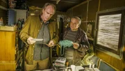 Seegrund. Ein KluftingerkrimiVon links: Der kauzige Gärtner Martl (Wolfgang Fendt) untersucht ein Fundstück aus dem See, derweil Kluftingers Kollege Richard Maier (Johannes Allmayer) eine wichtige Entdeckung macht.Bild: © ARD Degeto/BR/Hagen Keller