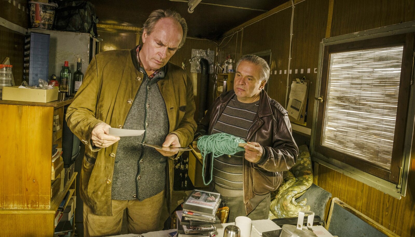 Schutzpatron. Ein KluftingerkrimiBei der Durchsuchung werden Kluftinger (Herbert Knaup, links) und Hefele (Jockel Tschiersch) in Strehls Rucksack fündig.Bild: © ARD Degeto/BR/Hendrik Heiden