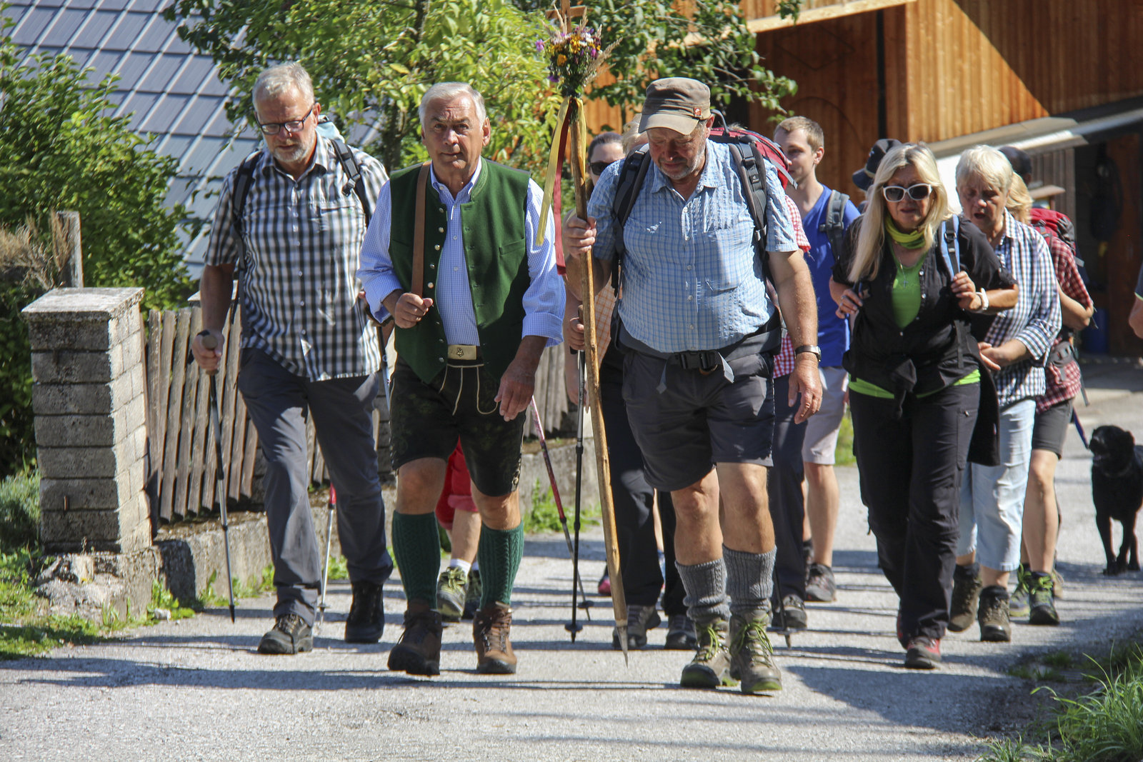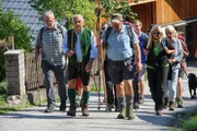Mit Bertl Göttl im ÖtscherlandPilgergruppe am Weg nach Annaberg, Bertl Göttl vorne links, Pilgerführer Heribert Pfeffer vorne rechtsBild: © ServusTV / Erhart