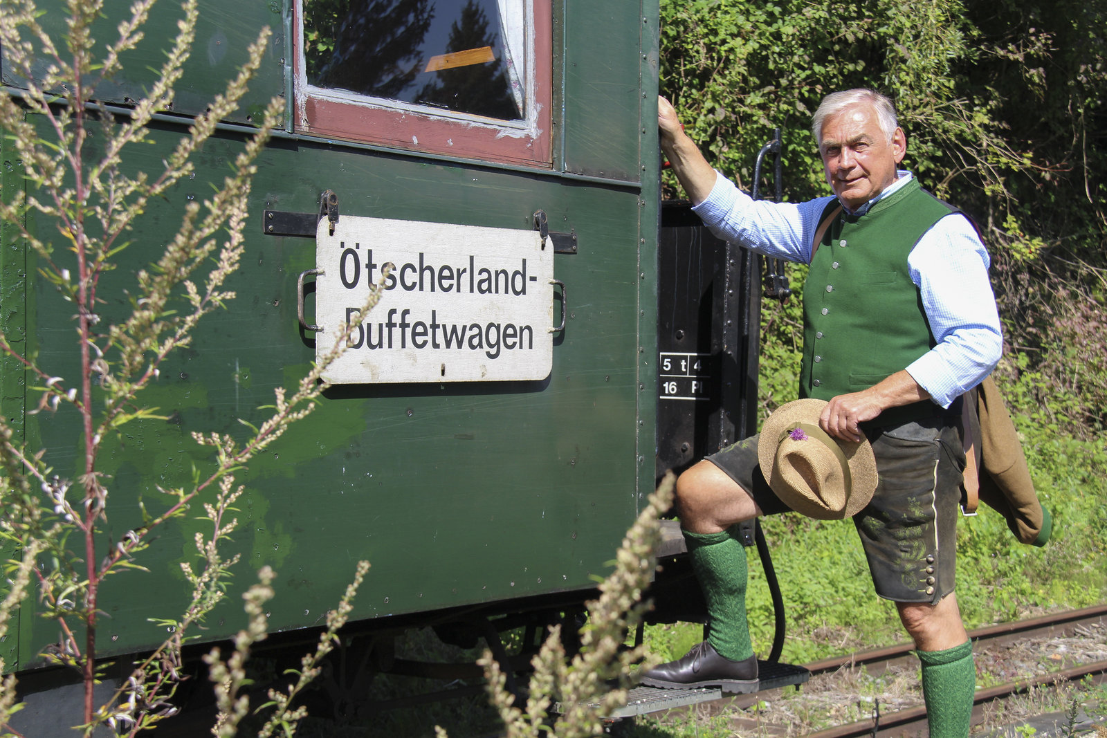 Mit Bertl Göttl im ÖtscherlandBertl Göttl beim Einsteigen in den ÖtscherlandexpressBild: © ServusTV / Erhart