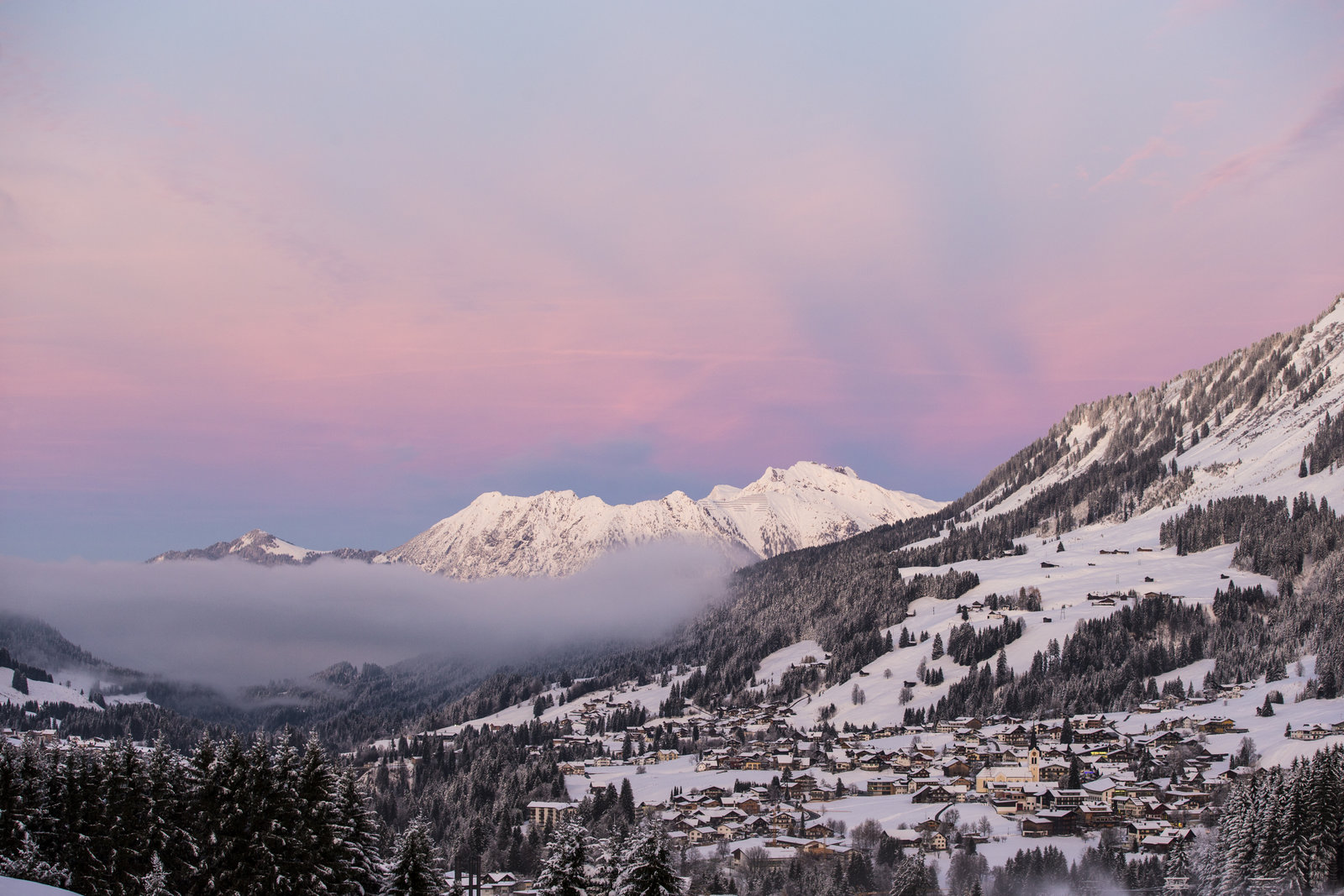 Kleinwalsertal - Die schönste Sackgasse der WeltInmitten majestätischer Gipfel liegt das österreichische Hochgebirgstal in einer Höhenlage von 1.100 bis 1.250 Metern am Nordrand der Alpen. Heute leben in den drei Dörfern Riezlern, Hirschegg und Mittelberg mit Baad etwa 5.000 Menschen.Bild: © SERVUS TV / Georg Kukuvec