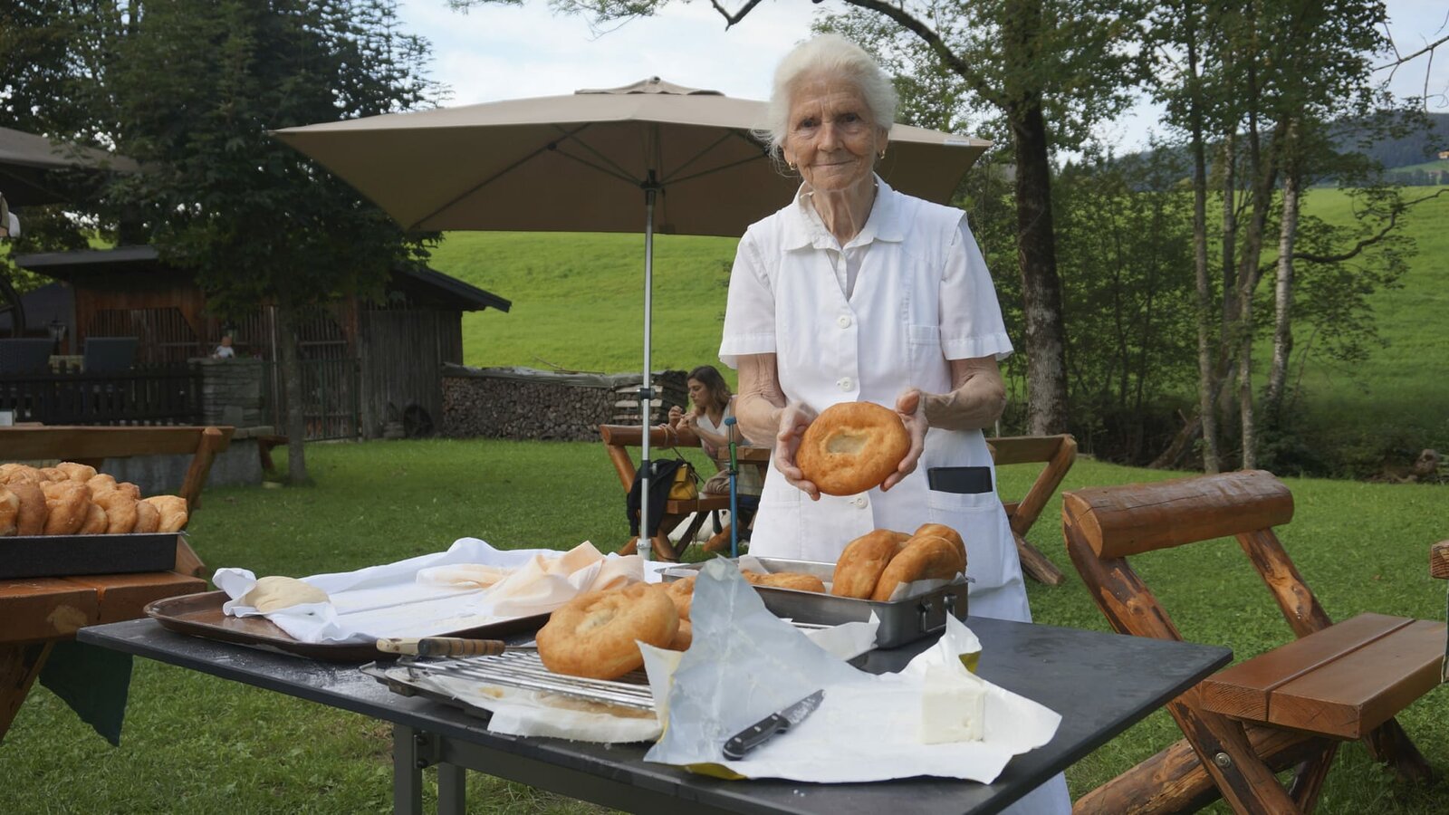 Der Mondsee - Alles außer gewöhnlichAloisia Wieneroither beim wöchentlichen Bauernkrapfen-Backen in der Erlachmühle. Großmutter der Familie Wieneroither, der die Erlachmühle gehörtBild: © ServusTV / Fröhlich Film