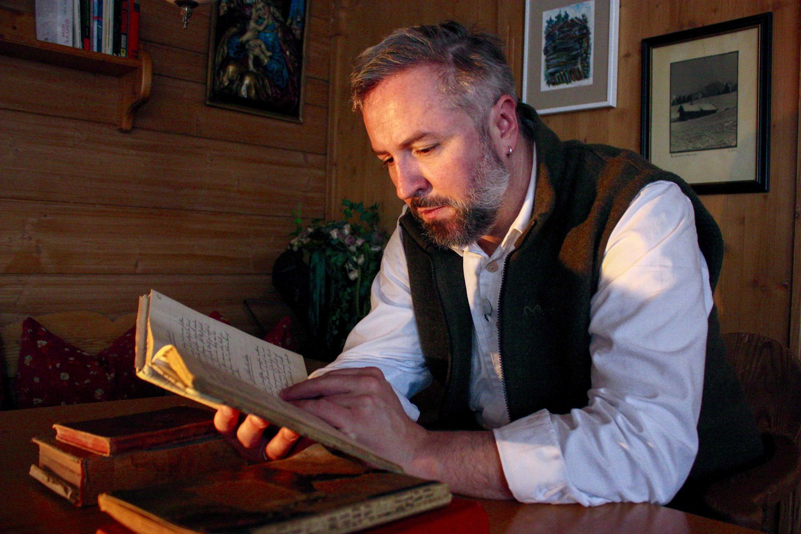 Sehnsucht Oberösterreich - Im Salzkammergut mit Richard DeutingerPorträt von Richard Deutinger am Hallstätter SeeBild: © ServusTV / Markus Christ