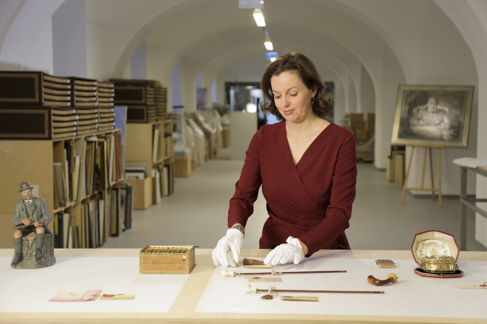 Frau Kaiser und das Erbe der HabsburgerHistorikerin Katrin Unterreiner begutachtet Objekte aus dem Besitz Franz Josephs waehrend ServusTV's "Heimatleuchten - Frau Kaiserin und das Erbe der Habsburger"Bild: © ServusTV