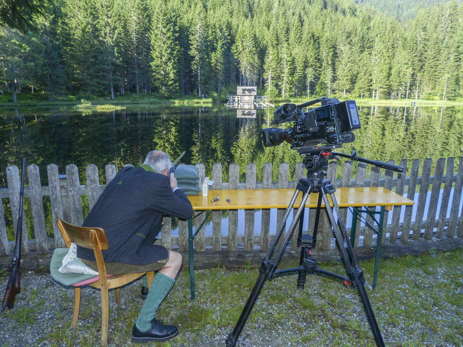 Die Steiermark - oafoch echt, sunst nix (1)Mit Feuerstutzen wird auf Zielscheiben geschossen, die sich im See spiegeln. Zu sehen in ServusTV's "Heimatleuchten - Steiermark, oafoch echt - sunst nix..." in Krakauschatten, Steiermark, Oesterreich.Bild: © ServusTV