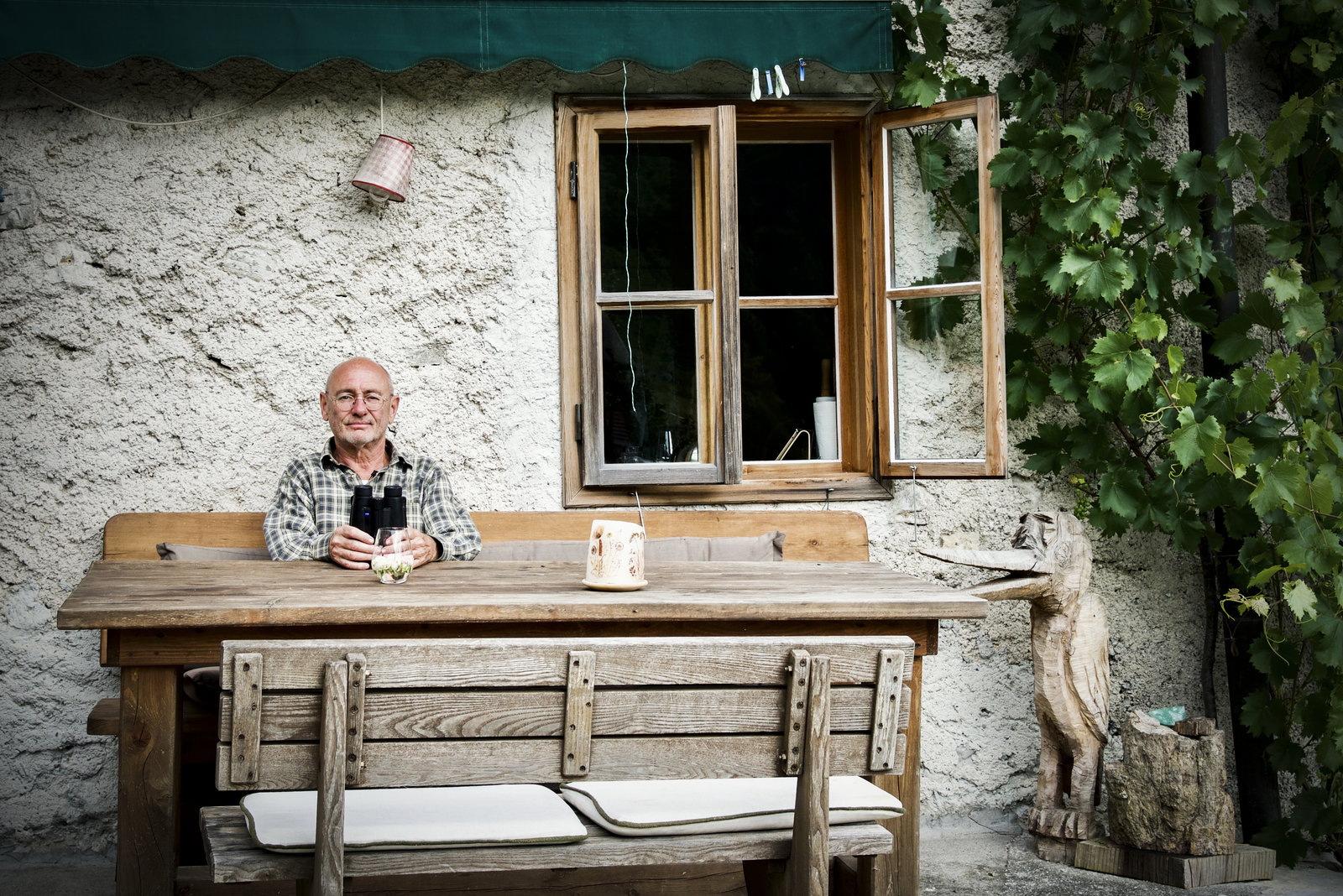 Harte Jahre, schönes Leben - AlmgeschichtenAlmbauer, Urforellen-Züchter und Züchter von Kakteen Robert Scheck auf seiner "Arche Noah Almn"Bild: © ServusTV / Burkhard Feige