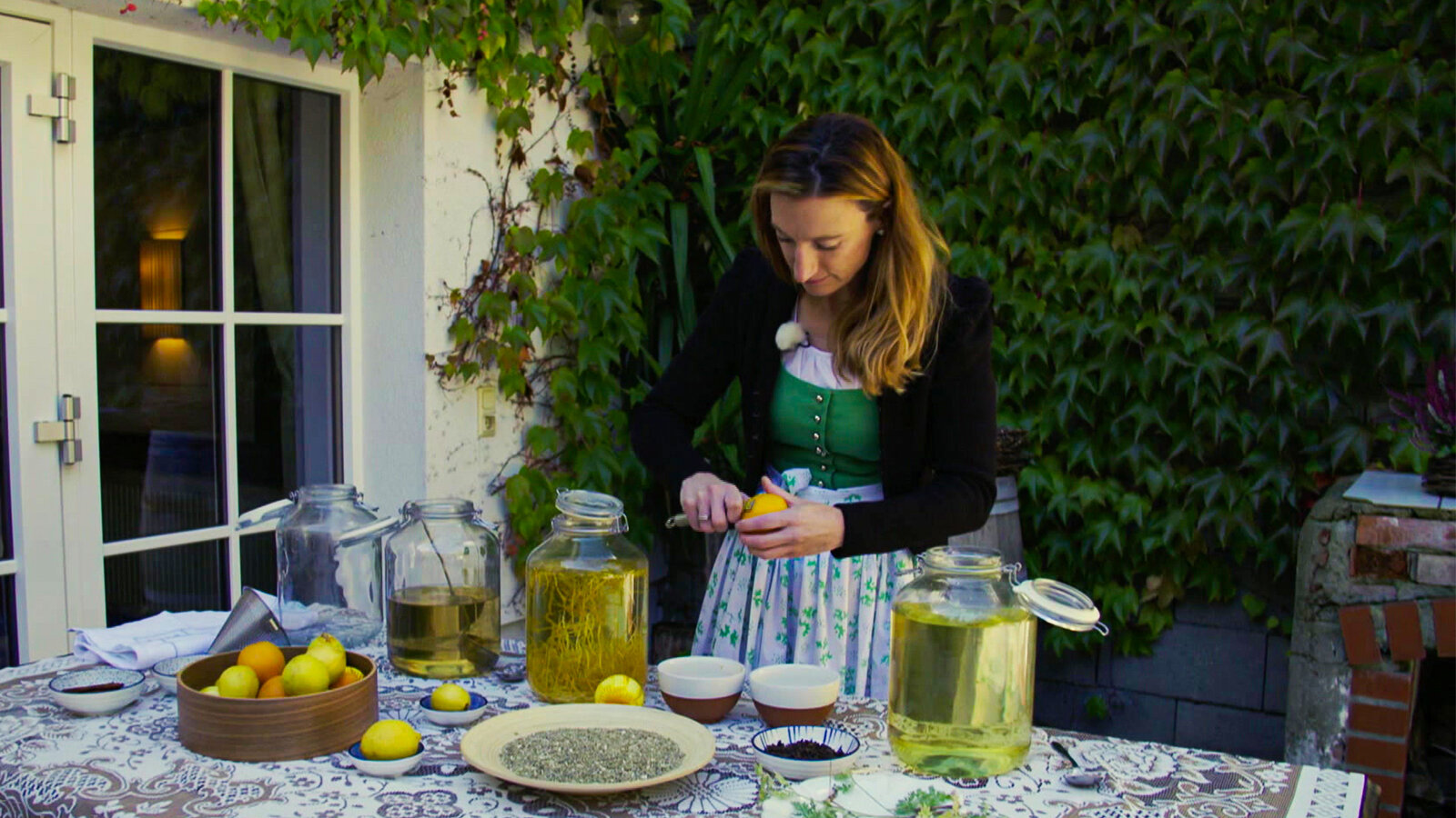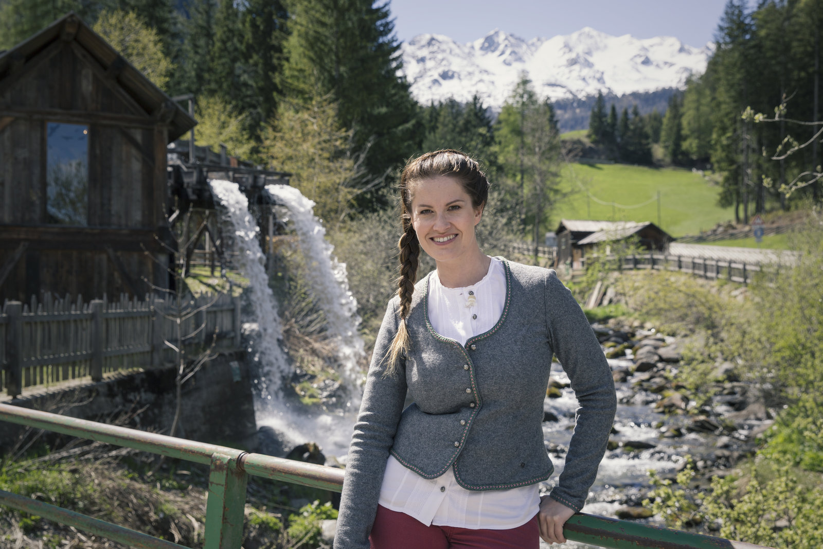 Mit Conny Bürgler durch SüdtirolHeimatleuchten - Mit Conny Buergler durch Suedtirol - Portrait vor der Lahnersaege im UltentalBild: © ServusTV / Markus Christ