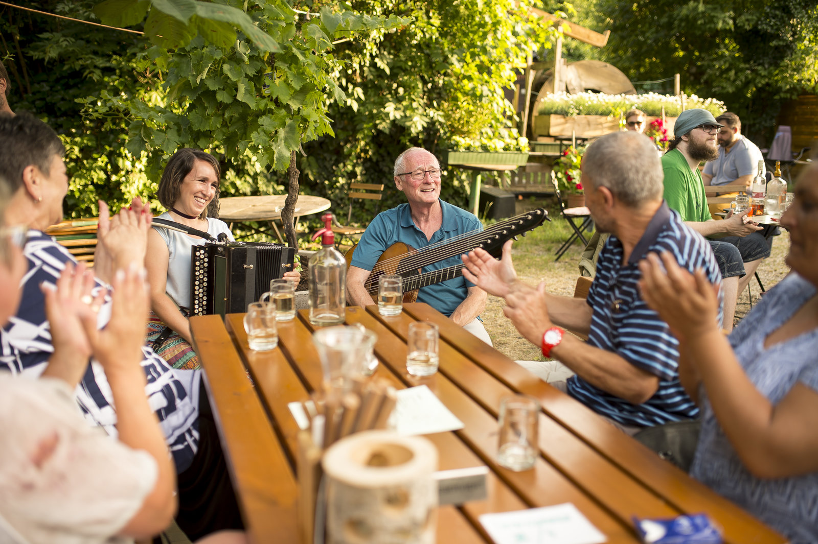 Ausgsteckt is! Österreich beim HeurigenDie Heurigen-Musikanten "Stickler und Koschelu" in der Weinschenke "Zur blauen Nas'n" in Wien.Bild: © ServusTV / Hörmandinger