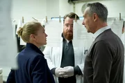 Schatten der VergangenheitWeyer (Tristan Seith, r.) hat etwas Neues gefunden. Helen Dorn (Anna Loos) und Falk Mattheissen (Daniel Friedrich) sind angespannt. in Verbindung mit der Sendung bei Nennung ZDF/Gudo EngelsBild: © ZDF/Willi Weber