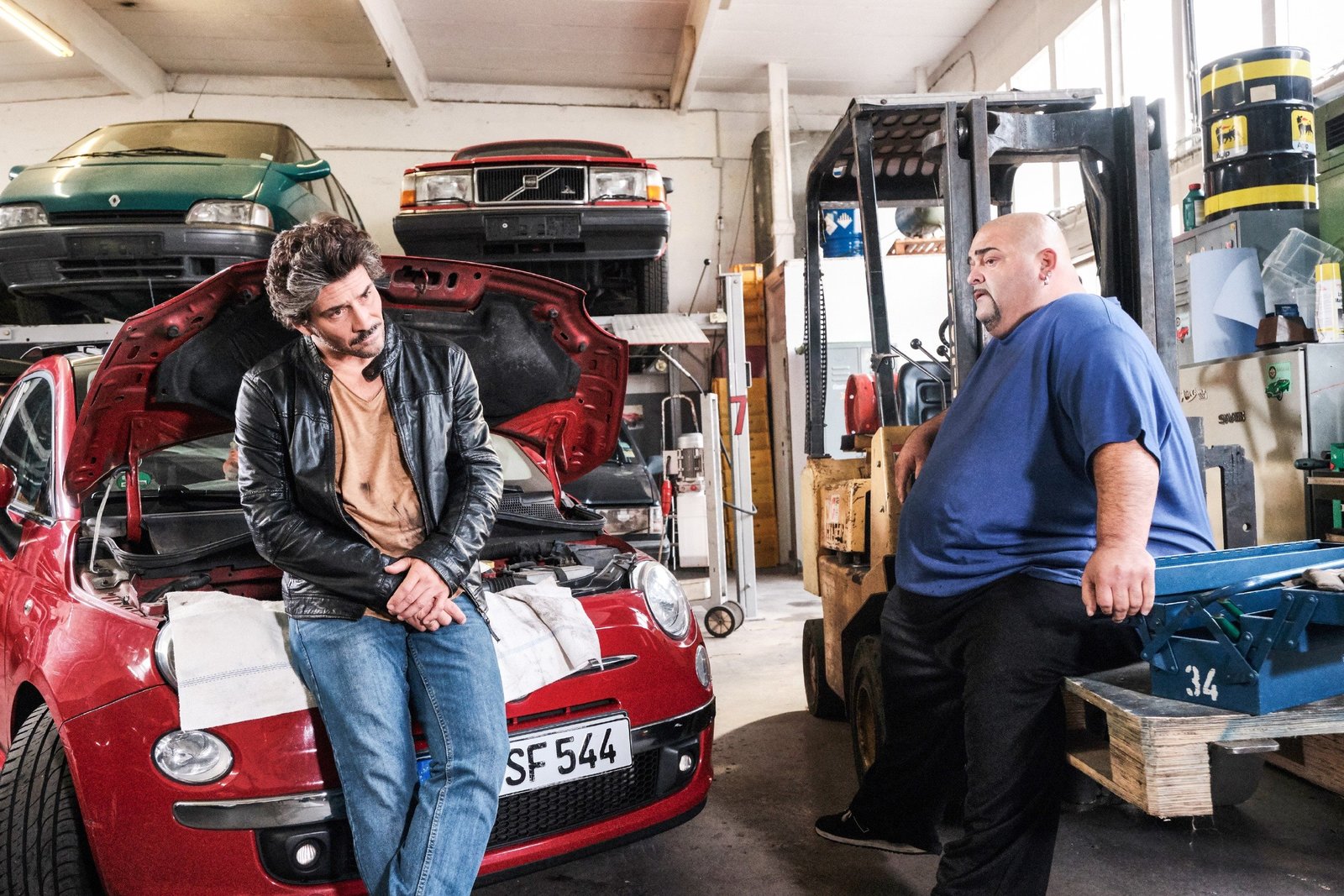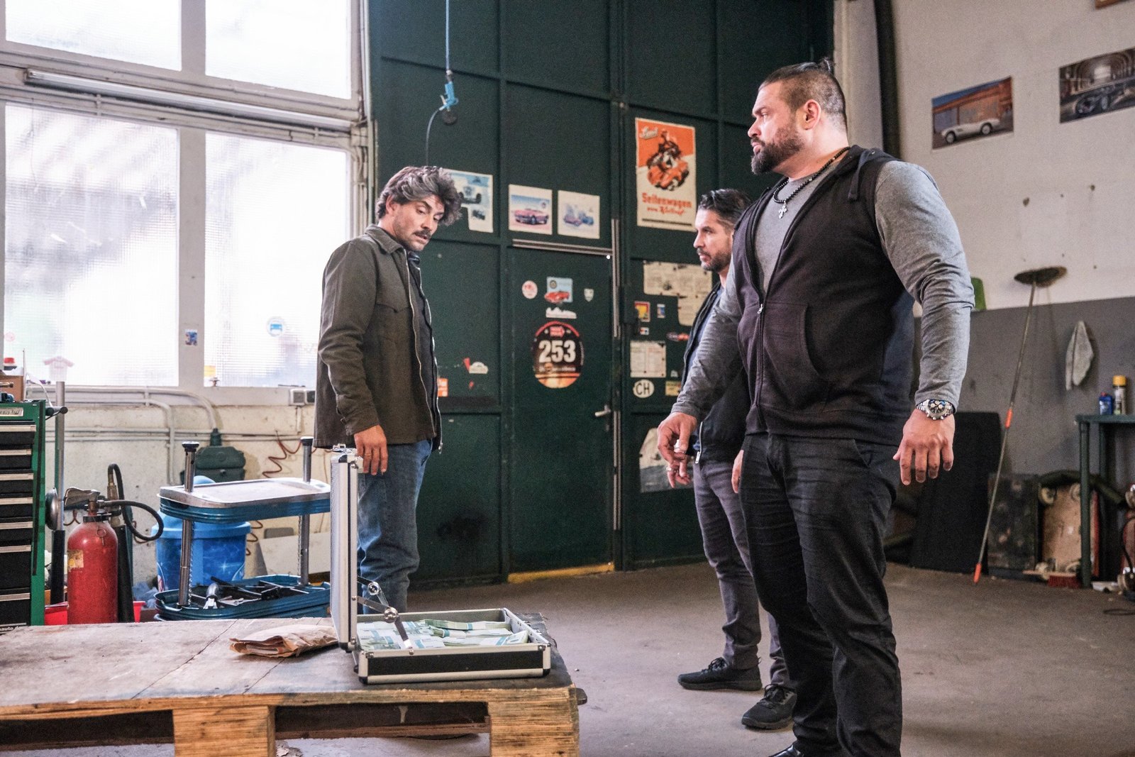 Die GoldübergabeManuel (Daniel Sellier, r.) versucht die unbehagliche Begegnung mit Robert abzuschütteln und sich auf die bevorstehende Übergabe zusammen mit Itchy (Hakan Orbeyi) zu konzentrieren.Bild: © TVNOW / Dennis Hundt