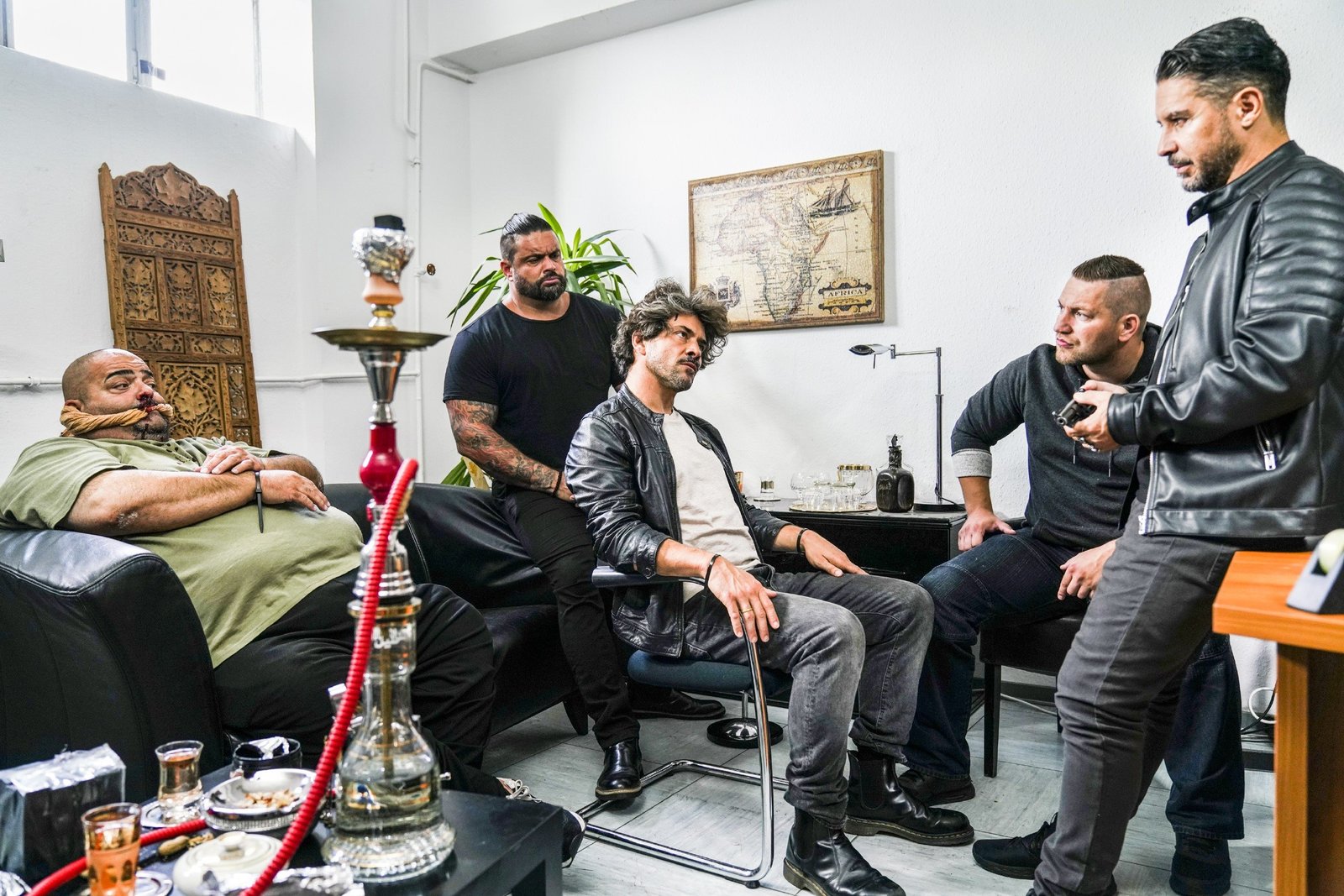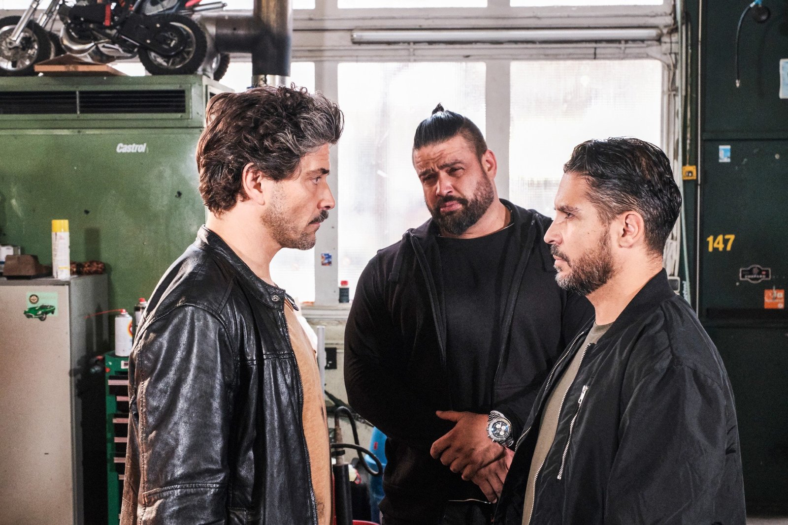 Erneut belogenManuel (Daniel Sellier, l.) wähnt sich am Ziel seiner Träume. Tarek Talal (Haydar Kizay), Bodyguard (Jakov Maksimovic,r.)Bild: © TVNOW / Stefan Behrens