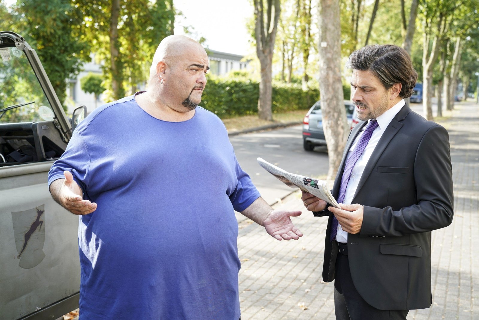 Eine Lüge nach der anderenManuel (Daniel Sellier, l.) weigert sich, auf Tareks (Haydar Kizay, r.) Forderung einzugehen und wird von seinem Bodyguard (Jakov Maksimovic) unter Druck gesetzt.Bild: © RTL