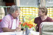 Robert (Felix Maximilian, l.) nutzt die Gelegenheit und trifft sich mit Bernd (Mario Pokatzky) um weiter nach Manuel zu forschen.Bild: © TVNOW / Dennis Hundt