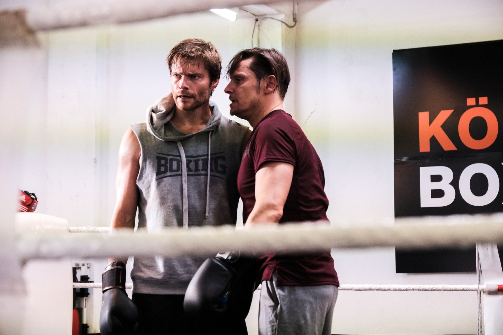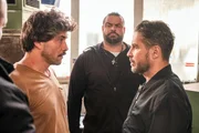 In SchwierigkeitenManuel (Daniel Sellier, l.) wird von Tarek (Haydar Kizay, r.) eindrücklich gewarnt, Itchys Schulden zu begleichen. Bodyguard (Jakov Maksimovic)Bild: © RTL