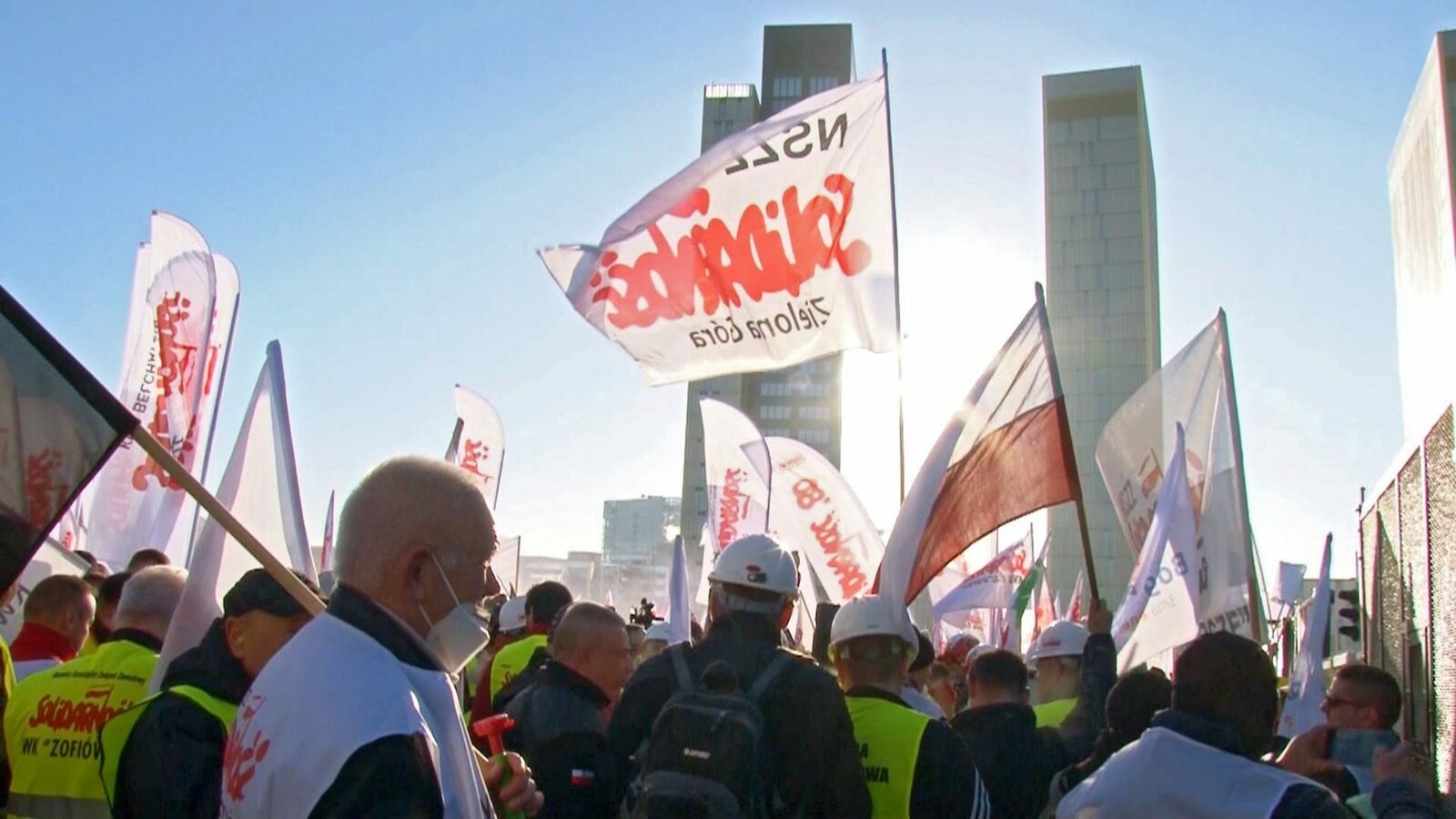 Tagebau Turow: Dreikampf im DreiländereckDie polnischen Bergarbeiter demonstrieren in Luxemburg. Sie fürchten um ihre ArbeitsplätzeBild: © MDR/Bettina Wobst