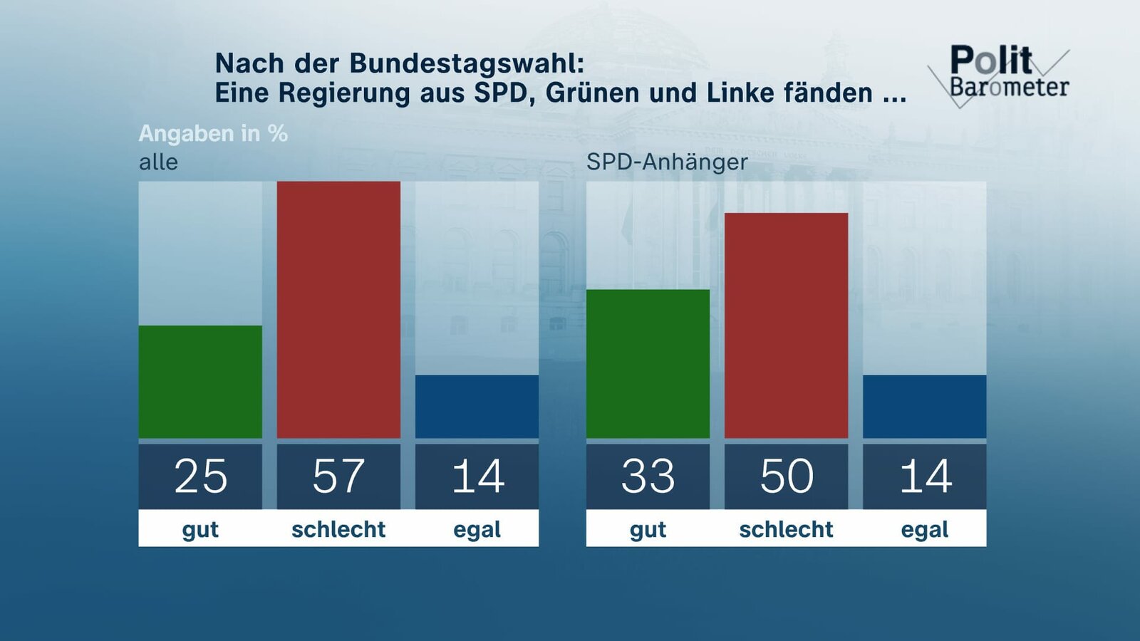 Nach der Bundestagswahl: Eine Regierung aus SPD, Grünen und Linke fänden ...Bild: © ZDF und Forschungsgruppe Wahlen./Forschungsgruppe Wahlen