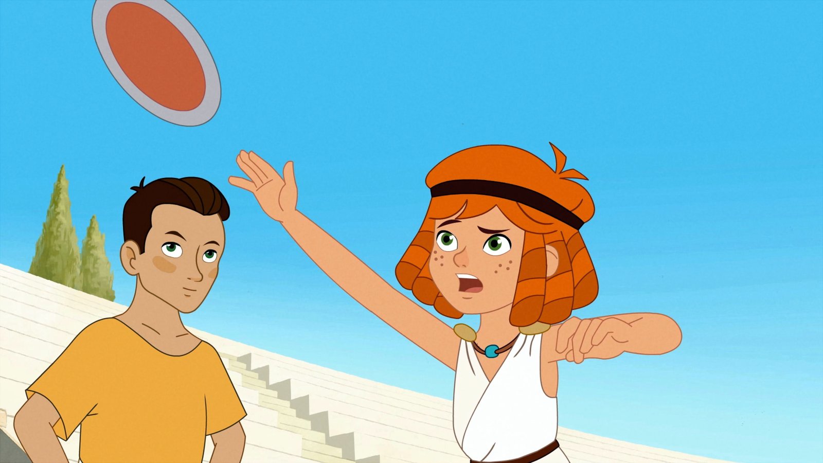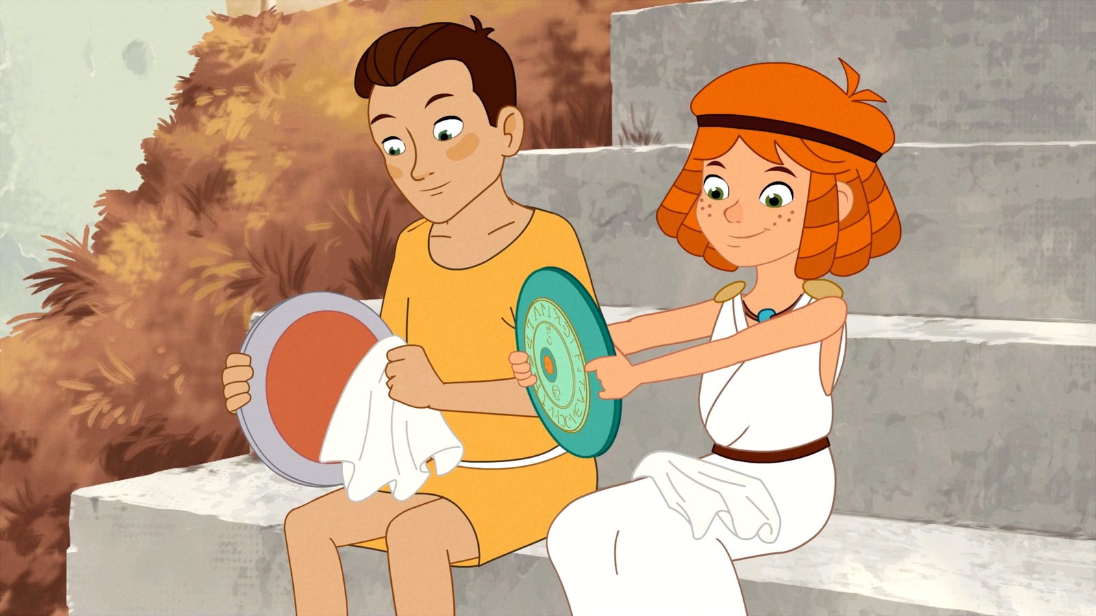 Lilli bei den Olympischen SpielenHerakles poliert mit Lilli einen Diskus.Bild: © ORF 1