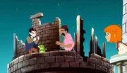 Lilli und das Dorf der VampireARD/WDR HEXE LILLI (52), III. Staffel, "Lilli und das Dorf der Vampire", am Samstag (30.05.15) um 06:45 Uhr im ERSTEN. Die Dorfbewohner wollen den Fledermausjungen in der Burgruine fangen.Bild: © WDR/Trixter Film Gmbh