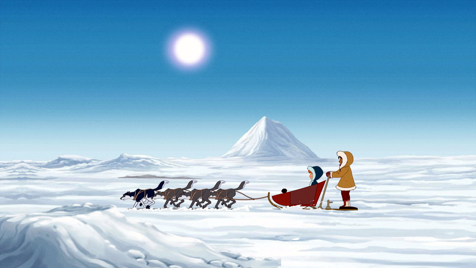 Lilli und das EskimomädchenLilli und Kilaq fahren mit dem Hundeschitten über ein riesiges Schneefeld.Bild: © ORF eins