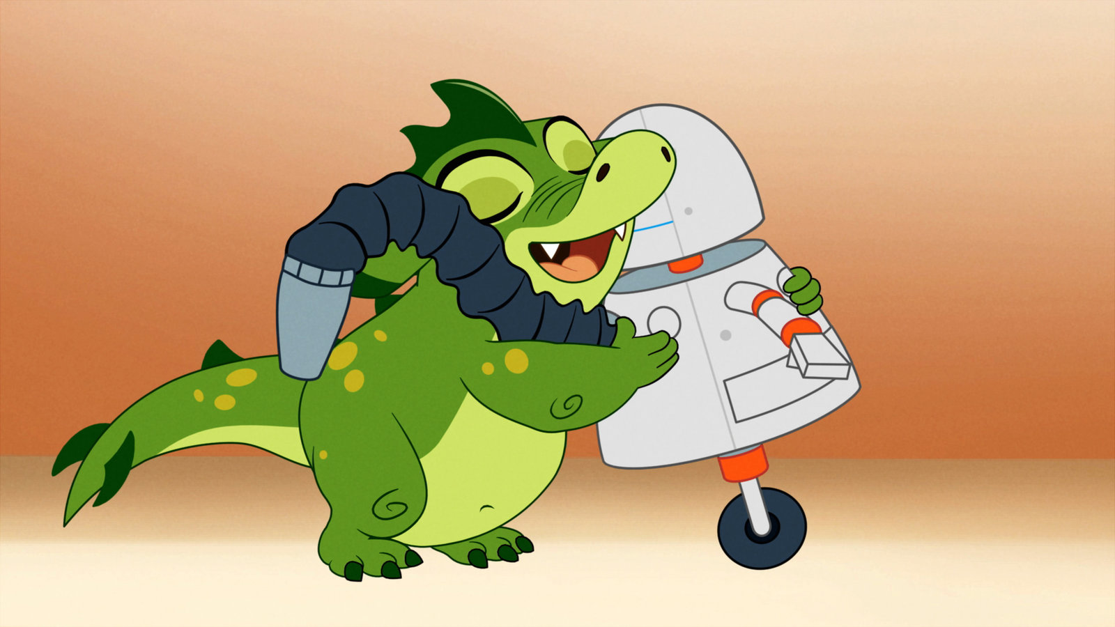 Lilli und das verrückte RoboterhausHektor umarmt den kleinen Roboter.Bild: © WDR