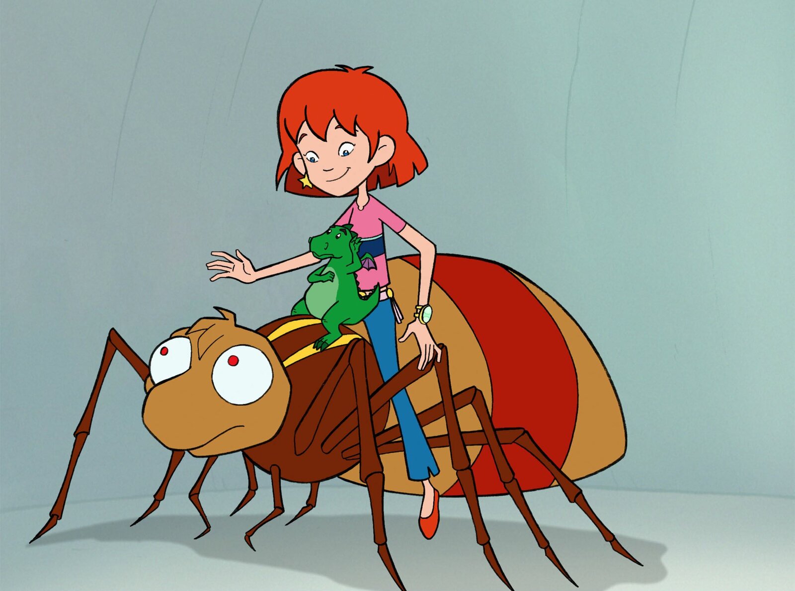 Lilli und die RieseninsektenGute Freunde: Lilli, Hektor und die ängstliche Spinne Timmy.Bild: © WDR/Trixter Film Gmbh