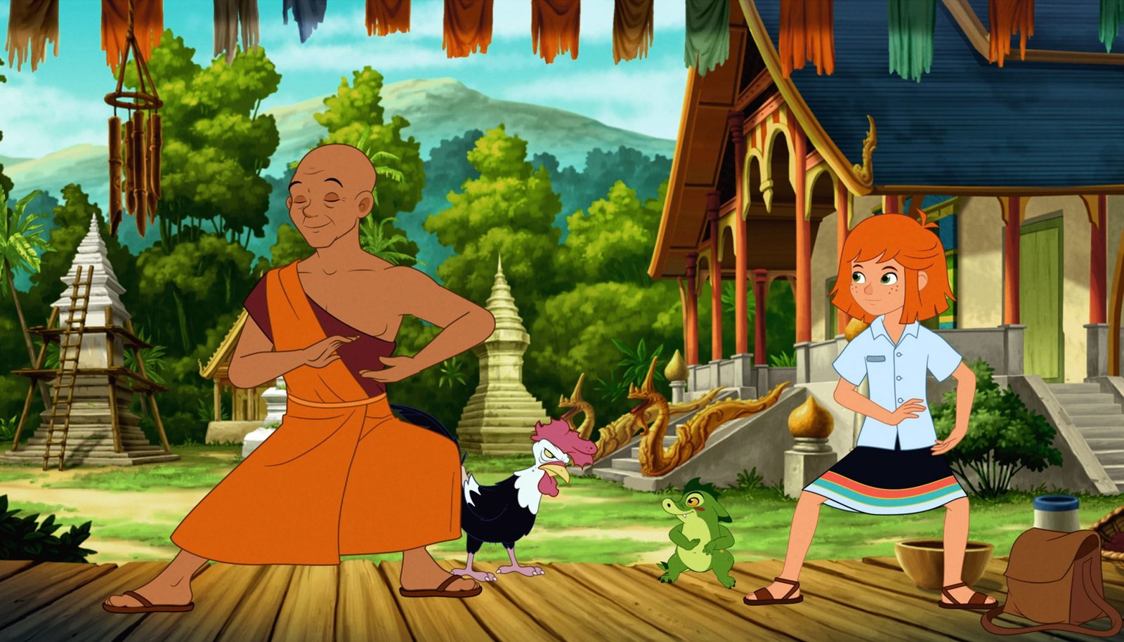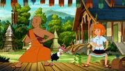 Lilli und der Kung Fu MönchARD/WDR HEXE LILLI (50), III. Staffel, "Lilli und der Kung Fu Mönch", am Sonntag (24.05.15) um 06:20 Uhr im ERSTEN. Lilli und Hektor üben mit dem Kung Fu Mönch einige Schritte.Bild: © WDR/Trixter Film Gmbh